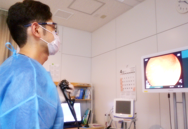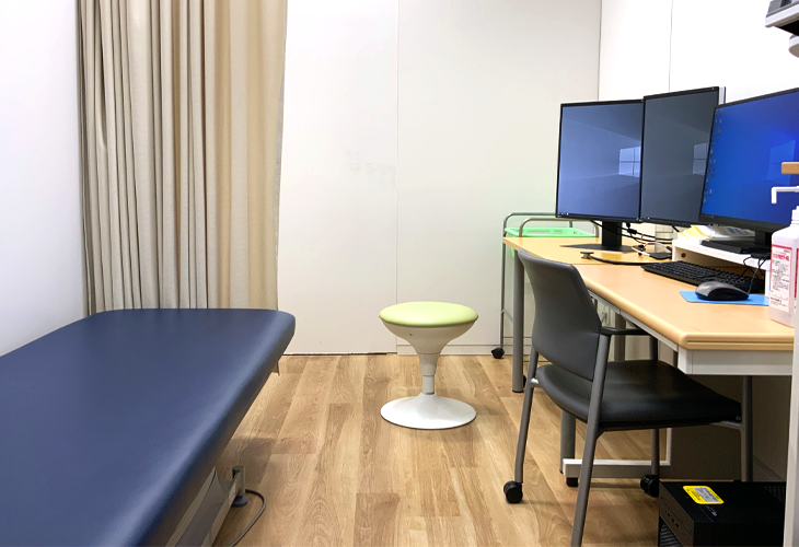 医師による診察を行います。清潔な診察室で皆さまが気になる症状を確認させていただきます。